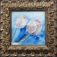My small paintings cost much less than the big ones. Still they are all different, many of them with handmade frames and cut glass.